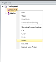 You can see in the project files a Web Test has been added. If you want you can rename that by right clicking on the project and choosing the rename option.