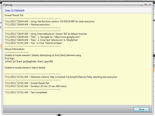 In browser perform some operations to test. After performing all the operation choose Run from the ribbon the run the test.