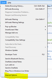 Tools menu -> Internet Options