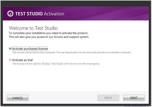 In this post we will take a look on Activation process of Test Studio. After successful installation of Test Studio, you will be prompted to activate the installation.