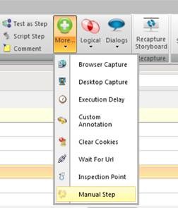 To add manual step Add section in ribbon and select more option. In drop down you will find Manual Step option to add.
