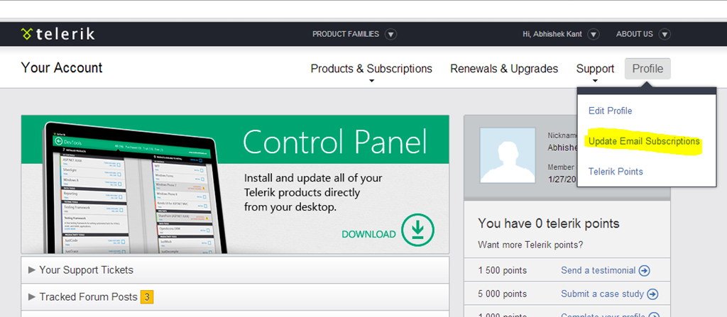 Telerik publishes monthly newsletters that make brings the summary of the latest in your mailbox. If you have trialled any product from Telerik or downloaded a free product, you may still not be subscribed to the newsletters. This is strictly sent on an “opt-in” basis to avoid any unintentional spamming.