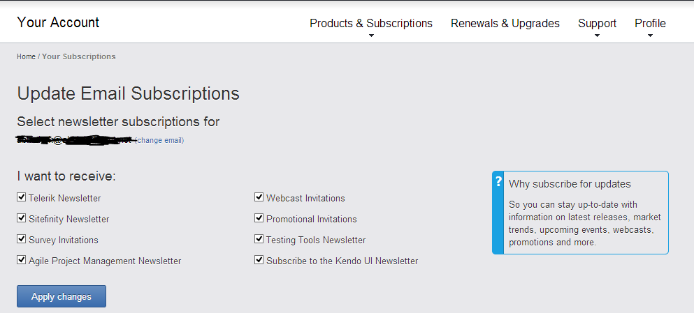 - Choose the newsletter(s) that you want to subscribe to and click on Apply Changes