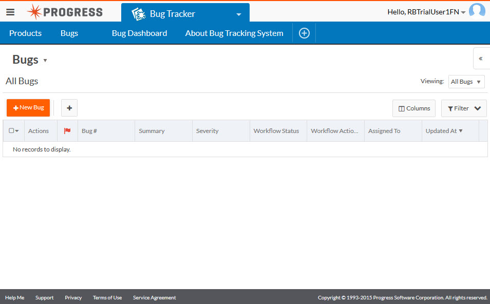 As you can see we now get a list of our applications. And i see my Bug Tracker application listed also. I can just click on the Bug Tracker link and the application will be started. Here is the Bug Tracker application screen shot: