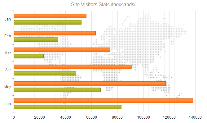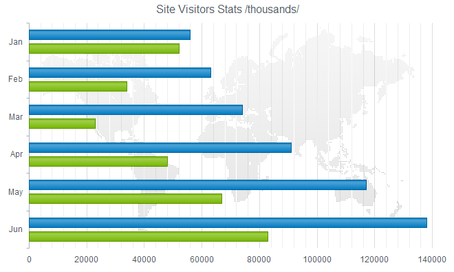 Kendo UI DataViz is our Data Visualization package as part of the Kendo UI Framework. Kendo UI DataViz is HTML5 compliant and generates SVG (Scalable Vector Graphics) on HTMl5 supported browsers and falls back to VML (Vector Markup Language) on browsers that don’t support HTML5. VML is supported by pretty much all browser versions. If you are keen to know more about Kendo UI DataViz, head over to our DataViz demos online: http://demos.telerik.com/kendo-ui/area-charts/index