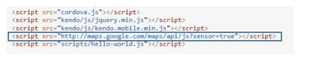 On creating Cross-Platform mobile application (Kendo UI Mobile) in Icenium, you will find by default references to work with Google map added in the project.