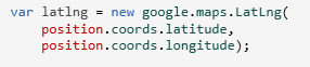 Now we need to write showMap function. In this function we will call PhoneGap navigatior.geolocation.getCurrentPosition function to get the longitude and latitude of current location of the user.