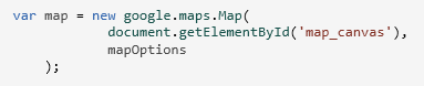 After creating map option we need to create the map. It takes two parameters. First HTML element on which you want to render the map and then map options. We have created a div with id map-canvas in map mobile view to render the map and in previous step, we created the map option.