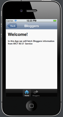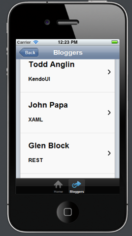 Now we need to create bloggerView. In this view we will put a Kendo UI Mobile ListView control. All the data returned from service will be bind to this ListView.