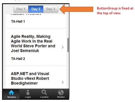 How to fix ButtonGroup at the top in KendoUI Mobile View