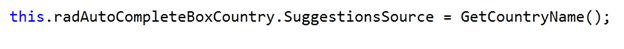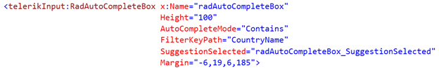 Our RadAutoCompleteBox control looks like the following on the aspx page: