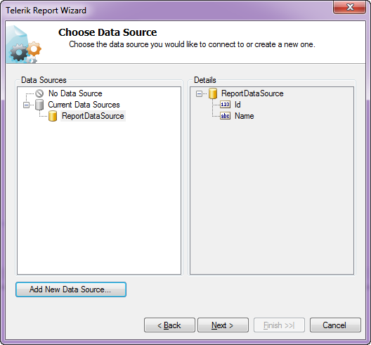 A: The ObjectDataSource will let you bind to any objects that you might have in BLL. Take a look here for step to step: http://blogs.telerik.com/blogs/13-06-06/reporting-or-control-suites-what-to-use-when-part-2