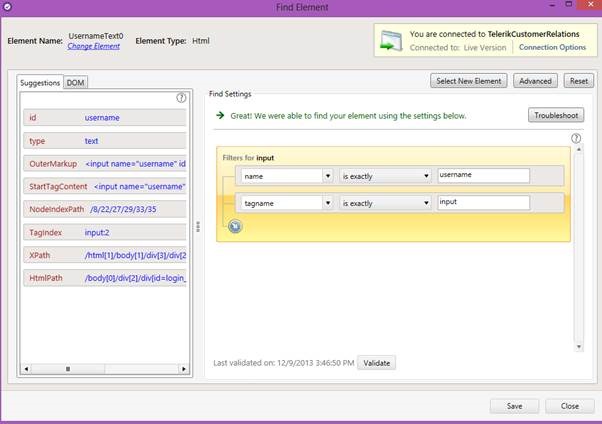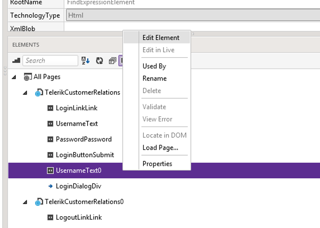 Second scenario could be you need to change identification logic only for a particular element. You do not want to change identification logic for whole Test project rather for a particular element. Test Studio allows you to do that as well. To do this select element from Element Repository and right click. From context menu select Edit Element.