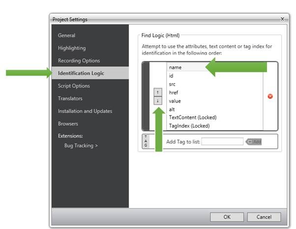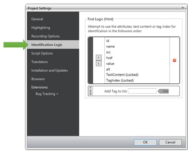 In this way you can configure FindLogic. You may notice that if required you can add new Tag to list as well. After reconfiguring Identification Logic you can find that now FindLogic for whole Test project (recording which will happen after changing logic) has been set to name and tagname.