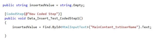 There could be many ways you can fix and automate test to find whether employee e2 exists in db or not. Test Studio allows you to write your custom logic using Coded Step. So we can write a coded step as below.