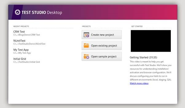 Test Studio has got all new user interface and look. Now it is lighter and more immersive. After installing latest version you will find TEST STUDIO Desktop home as given in below image.