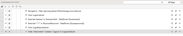 Now you can record test in any browser. Test Studio supports cross browser recording. In later posts I will show you in detail recording options. In new version recorded tests look like as following,