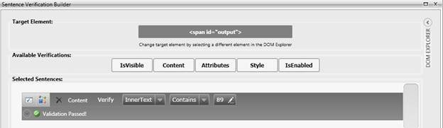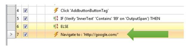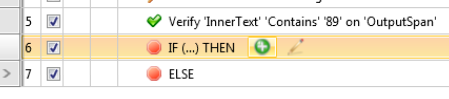 Click on the green add button to add a verification step as condition of if statement. Next you will find that a green add button next to the verification step (in this case InnerText Contains 89 of outputspan). Click on the green add button to select that verification. After that you will notice that that verification step has been added as condition of if statement.