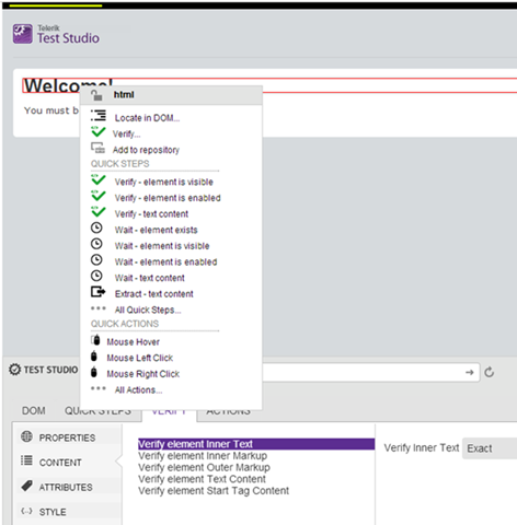 Now minimize the browser and go back to Test Studio to verify that all test steps got created as expected or not. Make sure that you are minimizing Test Studio not closing it.