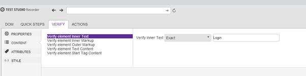 Select the option of Build Verifications. Here create a verification step by clicking on Content then choosing contains from drop down.