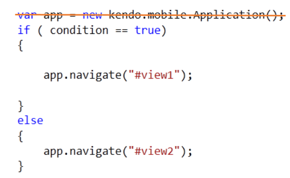 Recently while working with Kendo UI Mobile, I had to navigate from one view to other view inside if else condition. I had scenario, something like following